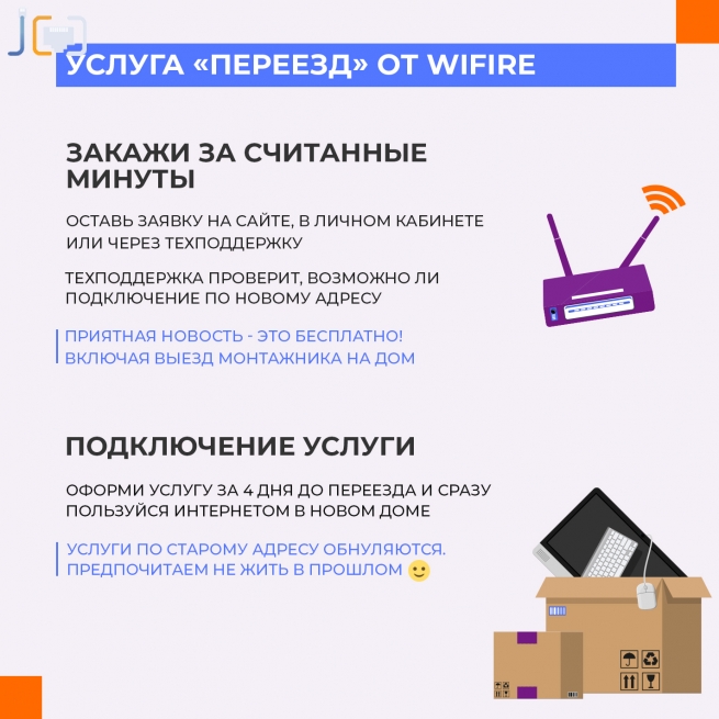 Даже в объявлениях о недвижимости наличие услуг интернета на адресе указывается отдельной графой. Ведь проводить его заново – это время. А теперь у многих работа зависит от связи со Всемирной паутиной и день-два простоя приравнивается к расстрелу через повешенье. Еще более ценно, если в квартире кроме нужных проводочков уже имеется роутер и приставка Wifire. Почему именно Wifire? Потому что услуги этого провайдера Вы сможете загрузить в один из чемоданов при переезде.